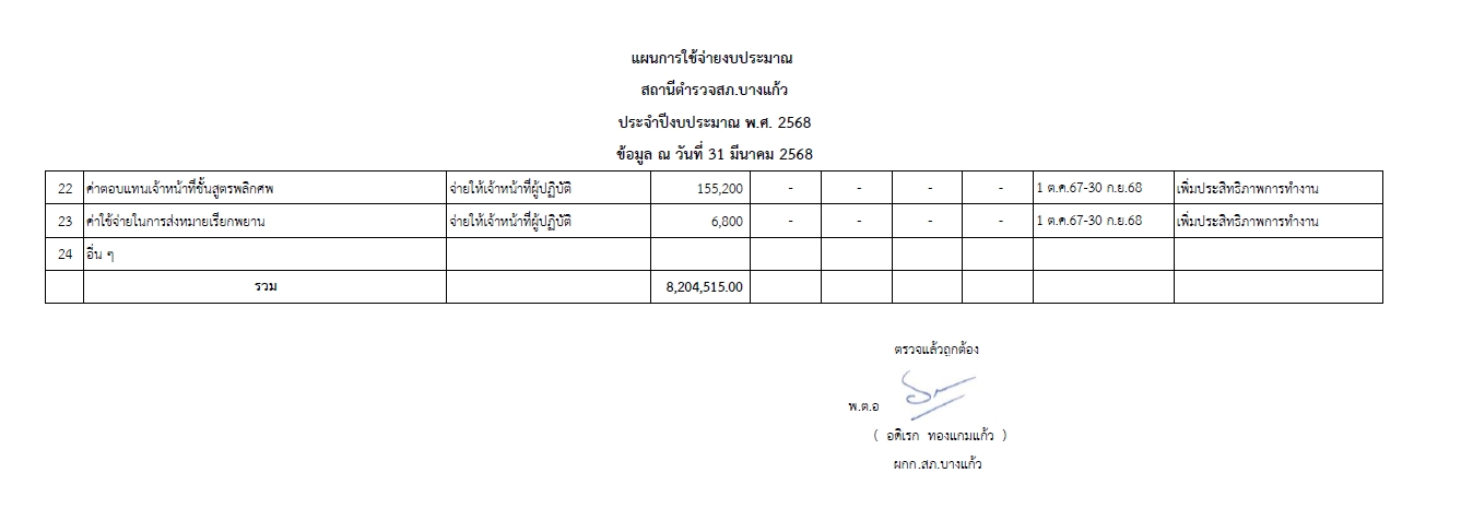 รายงานผลการใช้จ่ายงบประมาณประจำปีงบประมาณ 2568 ในรูปแบบ ไฟล์ PDF
