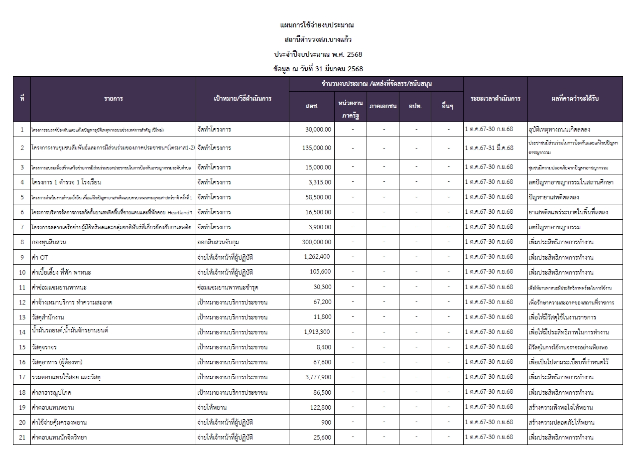 แผนการใช้จ่ายงบประมาณประจำปี งบประมาณ 2568 ในรูปแบบ ไฟล์ Excel คลิ๊กที่นี่